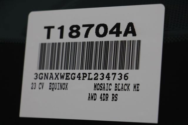 THIS 2023 CHEVROLET EQUINOX RS AWD IN MOSAIC BLACK METALLIC WITH A JET BLACK INTERIOR DELIVERS SPORTY STYLE AND MODERN TECHNOLOGY. THE 1.5L TURBOCHARGED ENGINE PAIRED WITH A 6-SPEED AUTOMATIC TRANSMISSION PROVIDES SMOOTH PERFORMANCE AND GREAT EFFICIENCY, WHILE ALL-WHEEL DRIVE ADDS CONFIDENCE IN ALL WEATHER CONDITIONS.